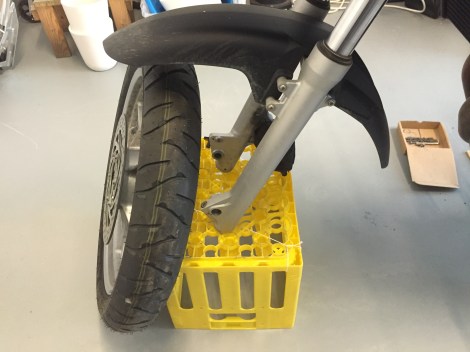 Da Bring viste seg å også ha tatt påskeferie ble både råd og avgjørelser tatt plutselig over disk. Jeg hadde egentlig bestillt et sett med Dunlop Trailmax TR91, men kun bakdekket var ankommet så en kjapp titt i den lokale katalogen resulterte i et Michelin Anakee III montert foran.