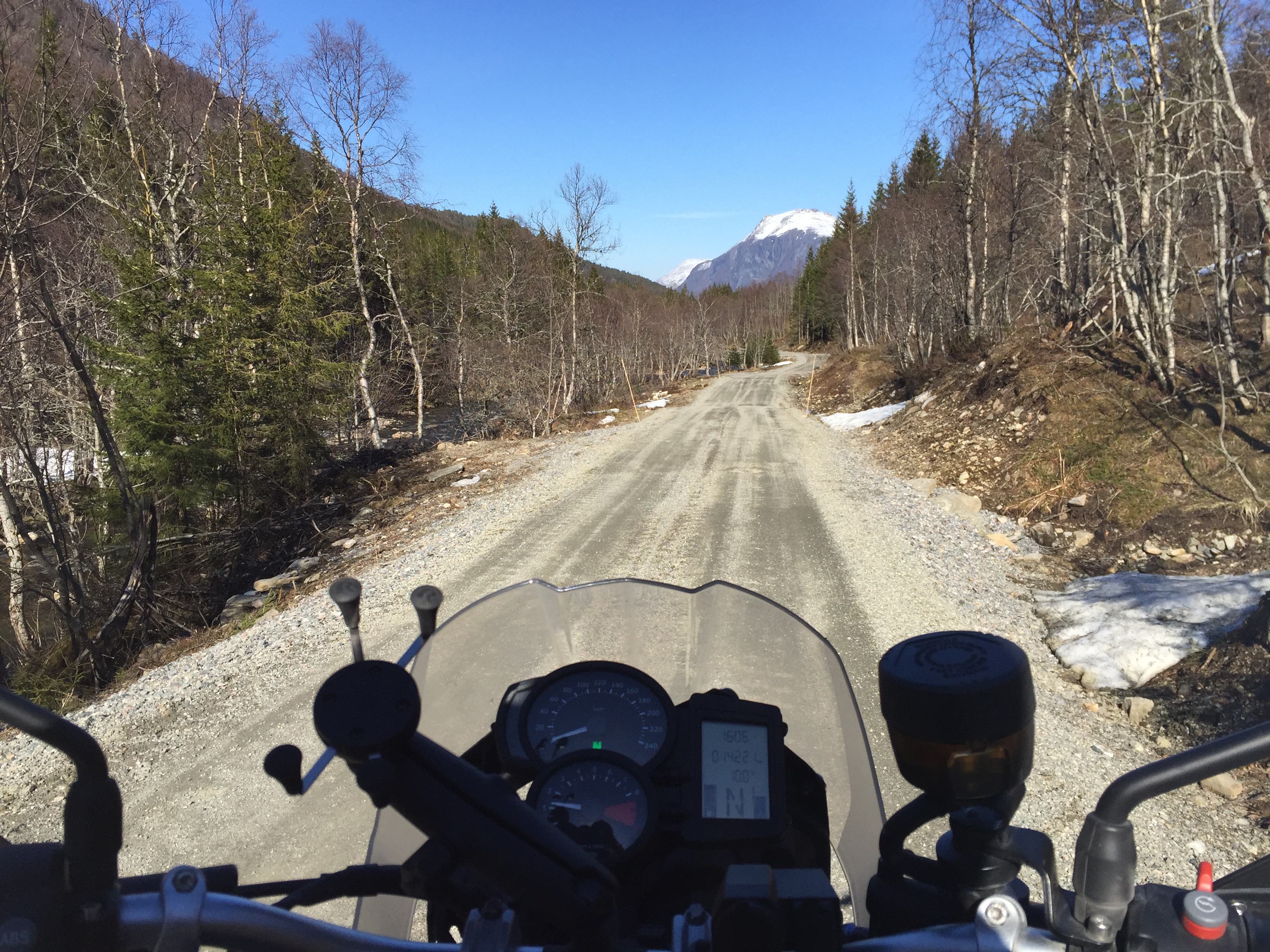 Mellom den tiden da fjellovergangene stenger, og de åpner igjen så er det en periode der de er «litt» åpne. Hyttefolket må jo komme seg tørskodd opp til solveggen sin, skjønner jo det. Gosaken i bollen er jo da at veiene åpner for litt gruserier på nymonterte dekk, og jeg må si at det er en merkbar forskjell i grepet på underlaget vs. de orginale BattleWings.